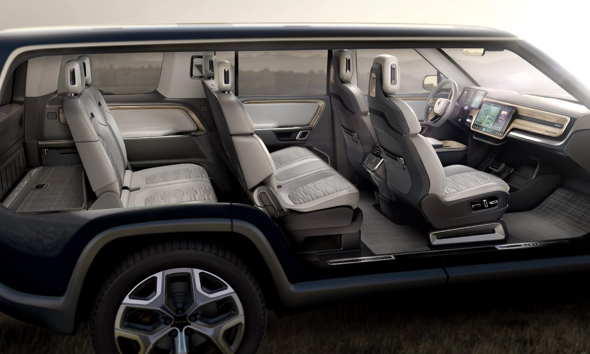 The R1S only has a single-seat configuration with a bench seat in the second row and two seats in the third row.