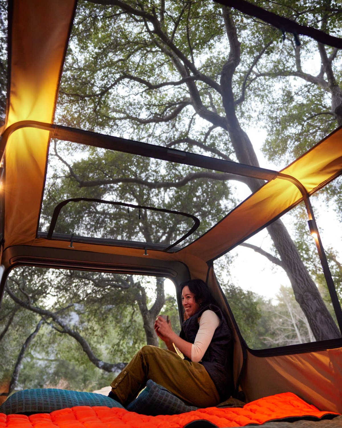 Of course, if you’re in the outdoors, what better to do than gaze outdoors? The large glass window panels on the roof and sides give you unobstructed views of the night sky and the terrain around you, while keeping bugs and elements out.