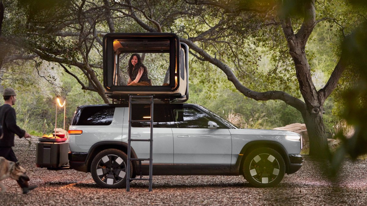 Efficiency is everything for an EV, especially when you strap a large box to the roof rails. The Treehouse features a sleek, hard-shell exterior that’s designed to minimize drag and preserve as much of the R2’s range as possible while you exit suburbia and make it to your camping destination.