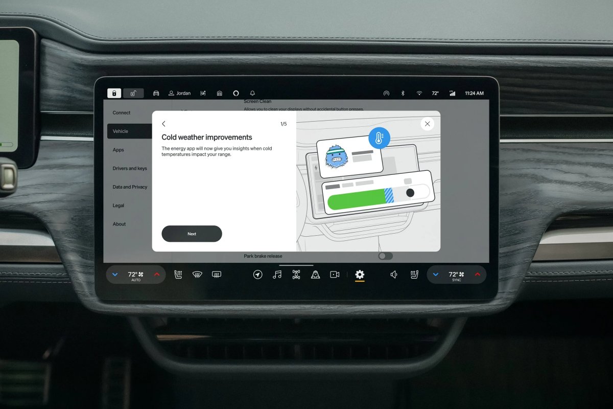 With this update, both the in-car display and the Rivian app will offer more detailed visibility into how the temperature is affecting your battery. You’ll now see blue shading on the battery graphic to indicate exactly how much energy is temporarily unavailable due to the cold, along with preemptive tips on how to manage your range.
