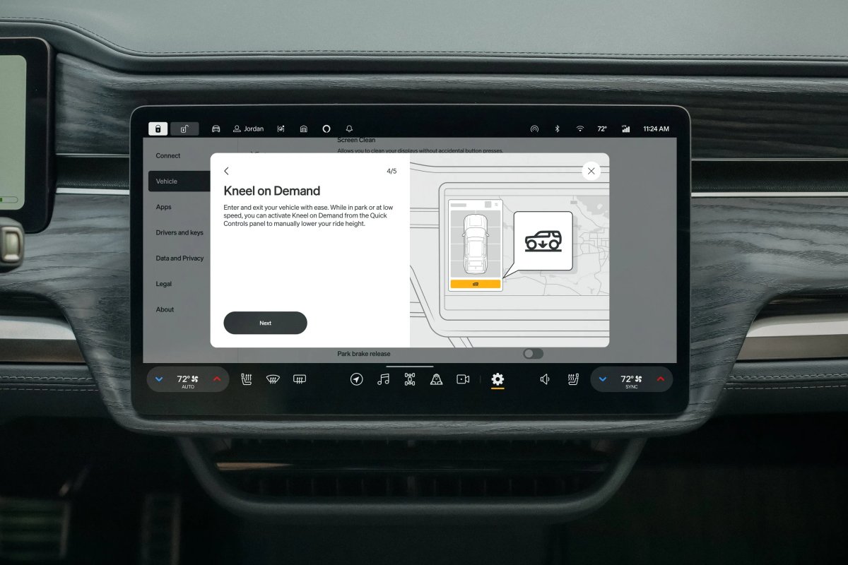 One of the most significant changes is a complete overhaul of Kneel Mode. Originally launched in 2022, this feature lowers the vehicle’s air suspension when you park to make it easier to get in and out or load up the front trunk.
